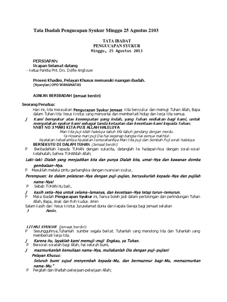 Dalam zaman modern ini kita mengenal adanya gereja pentakosta dengan tata cara ibadah yang tidak seformal saat di zaman awal terbentuknya gereja. Engkaulah kemuliaanku dan yang mengangkat kepalaku p. Kekuatan serta penghiburan diberikan tuhan padaku. Tata ibadah bulan oikoumene minggu, 28 mei 2017 menggunakan tata ibadah gereja kristen protestan indonesia (gkpi) tema: Tata ibadah bulan oikoumene pgi minggu, 26 mei 2019 tema: