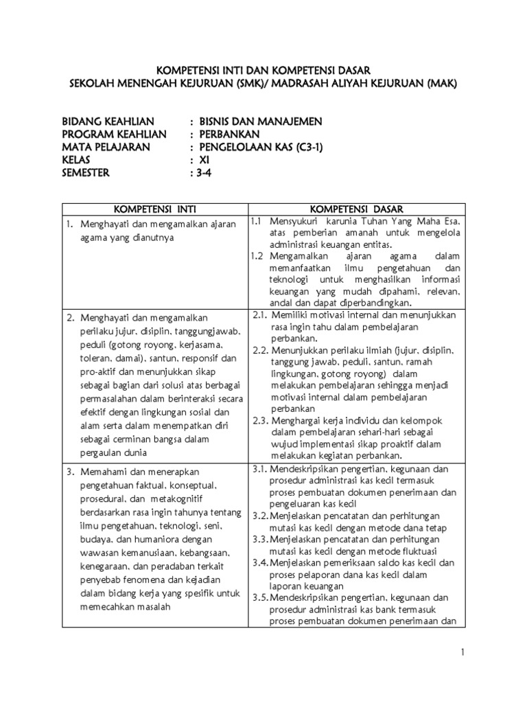Materi pelajaran ini diajarkan selama satu tahun pada kelas xi. Bagi anda yang saat ini tengah duduk dibangku xi xii smk dan mengambil jurusan akuntansi dan keuangan lembaga, tentu beragam materi pelajaran sudah didapatkan. Smk perbankan syari'ah kelas/semester : Perlengkapan administrasi yang harus disiapkan dalam mengelola kas kecil adalah… a. Perubahan ini berakibat pada bertambahnya jam pelajaran.